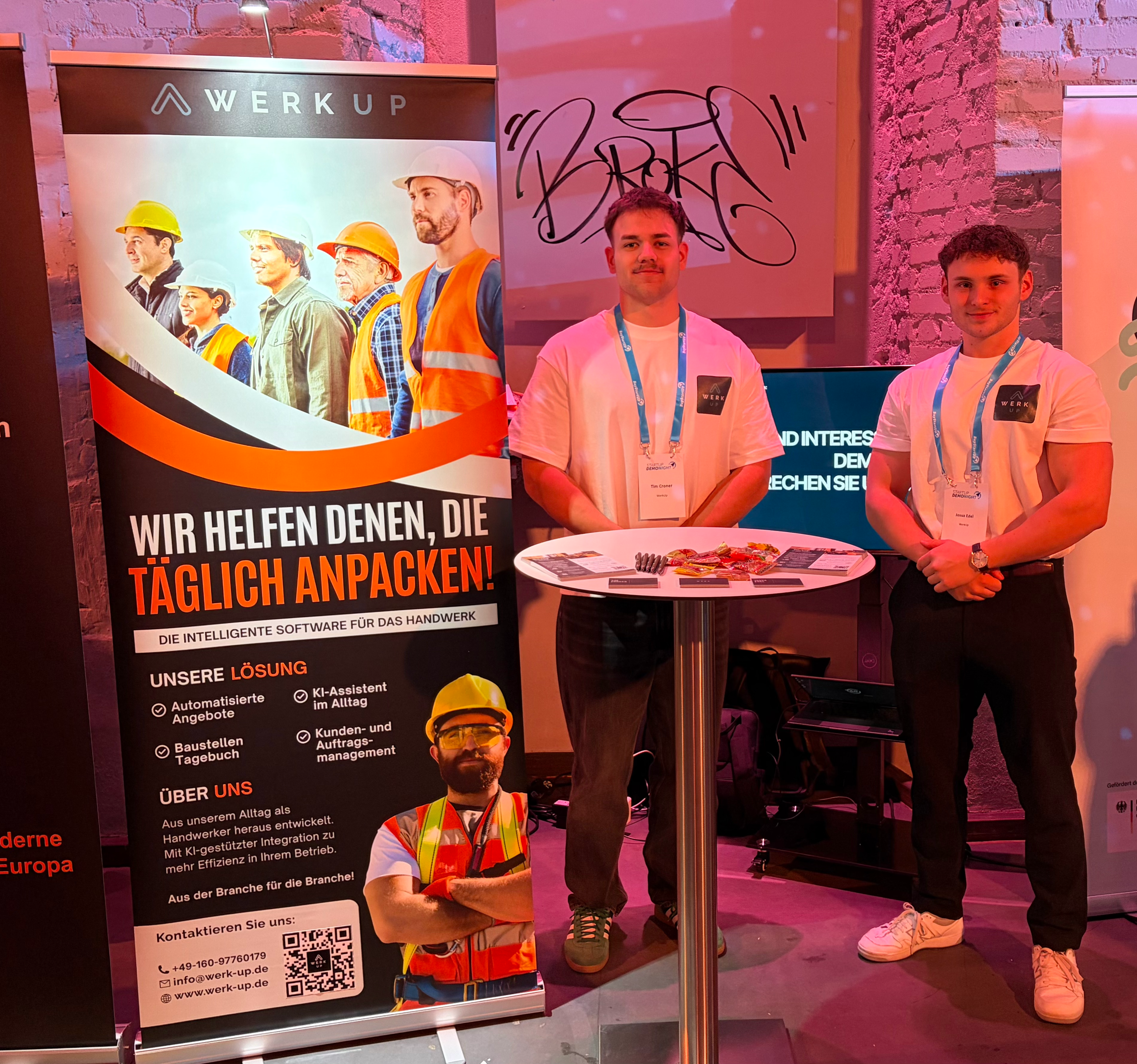 Bei der 15. Landshuter Gründernacht haben wir unsere Idee erstmals öffentlich präsentiert. Damals noch unter dem Namen EstimateX. Es war der erste Moment, in dem wir unser Konzept vor einem größeren Publikum vorstellen und wertvolles Feedback aus der Praxis erhalten konnten. Umso mehr freut es uns, dass wir an diesem Abend nicht nur den 3. Platz im Gesamtwettbewerb, sondern zusätzlich auch den Publikumspreis gewinnen konnten. Diese Auszeichnungen haben uns in unserer Vision bestärkt und gezeigt, dass der Bedarf an digitalen Lösungen im Handwerk enorm ist. Die Gründernacht war damit ein entscheidender Meilenstein auf unserem Weg von der ersten Idee hin zu dem, was heute WerkUp ist.